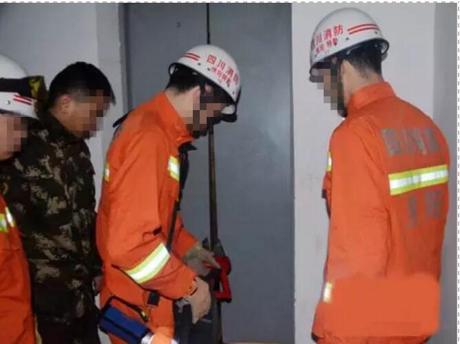 一道電梯門難不住消防員